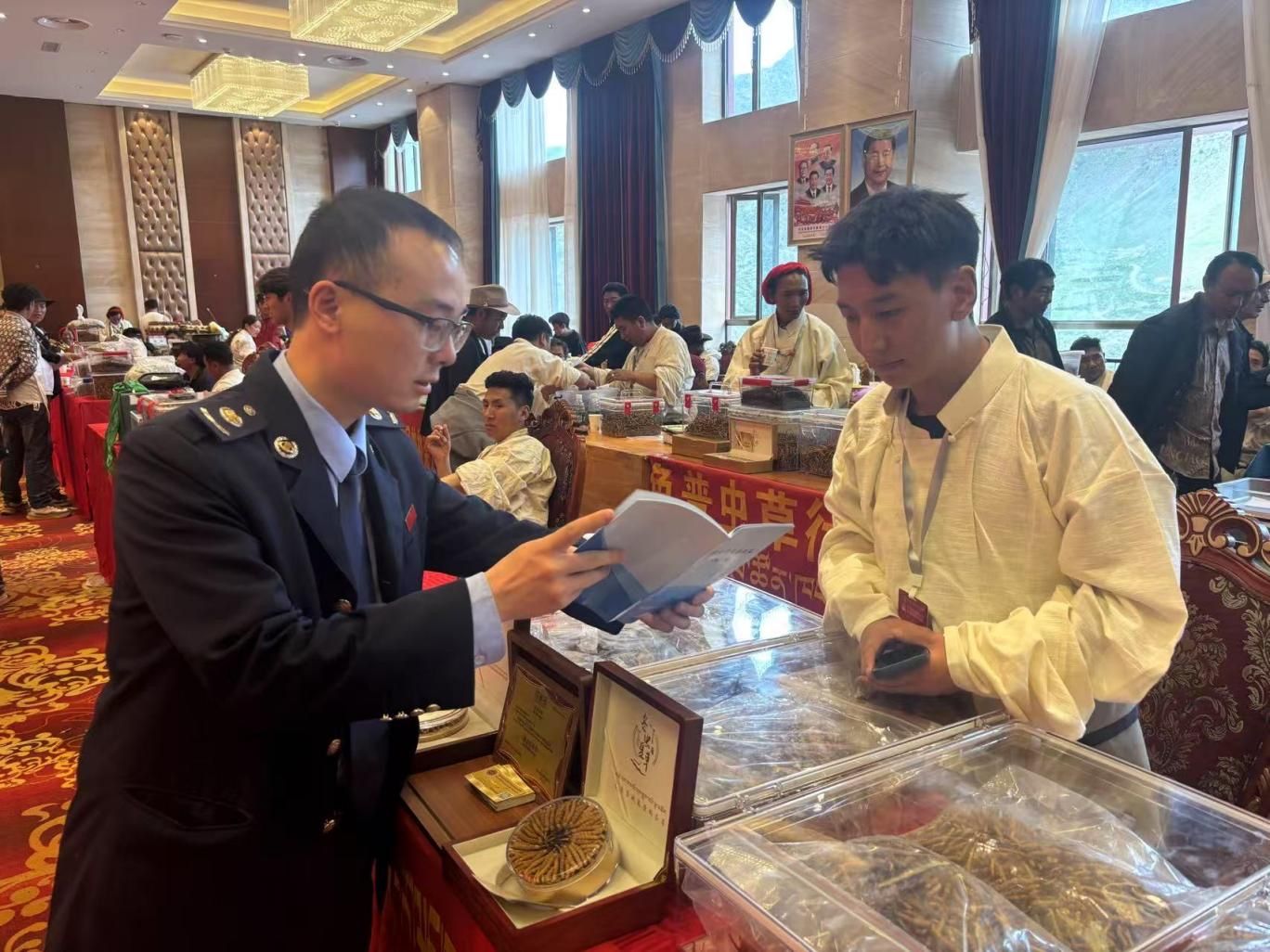 在蟲草交易活動開始前,兩縣稅務局開展了“稅惠政策答疑小課堂”,把“晦澀條文”解讀成大家都能聽懂的“明白話”,確保商戶“懂政策、會運用”,精準享受稅惠政策紅利。同時,在交易現(xiàn)場設立“蟲草辦稅答疑崗”,聚焦解答發(fā)票開具、免稅認定等高頻疑難問題,輔導商戶操作電子稅務局,“即問即答+實操輔導”雙管齊下,讓商戶“少跑腿、快辦稅”。