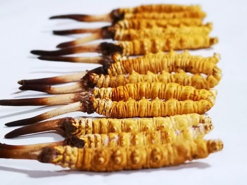 野生的冬蟲夏草之中,含有豐富的甘露醇,麥角甾醇、蟲草菌素及賴氨酸等人體所需的十余種氨基酸,還有鋅,鐵,鈣,鍶等微量元素,經常適量食用能提高身體免疫力,調節(jié)身體機能!更適合老年人,體衰患者,產后體虛者,有明顯的輔助效果。冬蟲夏草為蟲體與菌座相連而成,全長9-12厘米。蟲體如老蠶,長約5-6厘米,粗約0.5-0.6厘米。外表呈深黃色,粗糙,背部有多數橫皺紋,腹面有足8對,位于蟲體中部的4對明顯易見。斷面內心充實,白色,略發(fā)黃,周邊顯深黃色。菌座自蟲體頭部生出,呈棒狀,彎曲,上部略膨大。表面灰褐色或黑褐色,相對于蟲體來說,是比較短小的。折斷時內心空虛,粉白色。