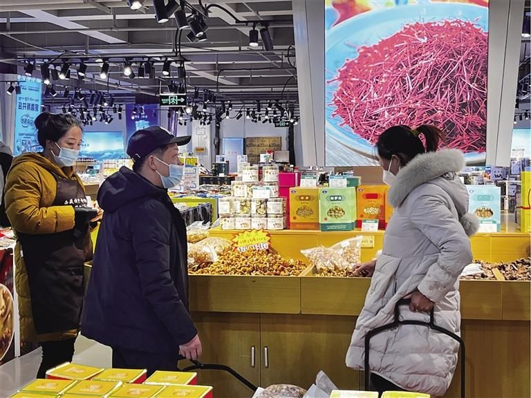 1月9日,記者來到西藏特產(chǎn)倉儲超市(乃倉店)進行實地走訪。走進超市,牦牛肉干、藏紅花、藏香豬肉、酥油茶、靈芝孢子粉等數(shù)百種西藏特產(chǎn)讓人眼花繚亂。雖是工作日,但前來購買特產(chǎn)的市民絡(luò)繹不絕。“馬上過年了,想挑選一些西藏特產(chǎn)帶回去。”前來購買特產(chǎn)的李女士說,“今天主要買了西藏本地產(chǎn)的蟲草酒和藏蜜,送長輩很合適。”